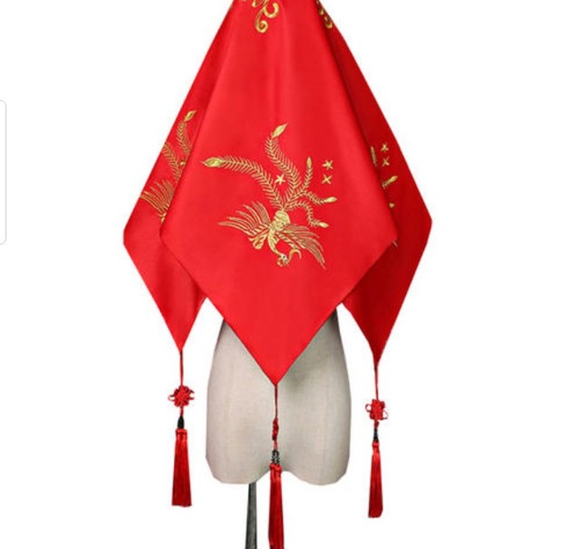 玄女娘将盖头盖在玄女头上。
