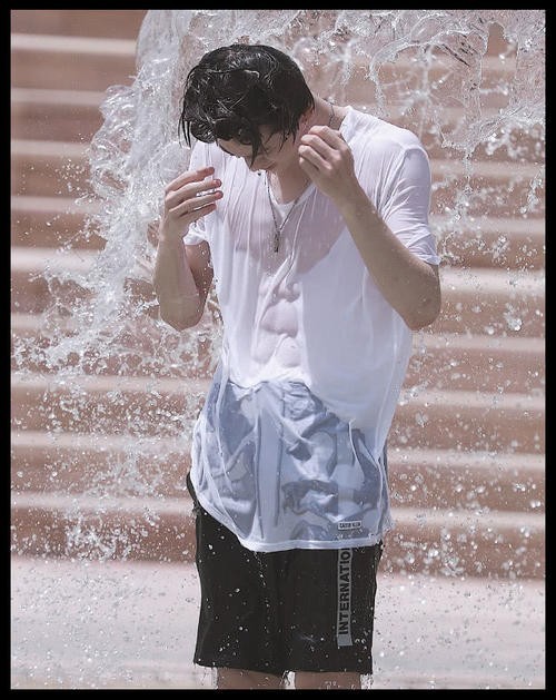 Justin看见瑶瑶浑身湿透的样子,感觉到脑袋里面电流划过