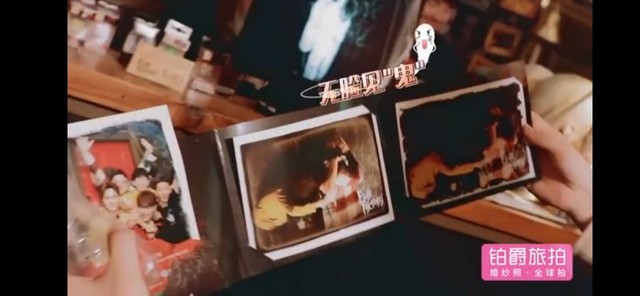 然后到柜台那里,老板拿出刚刚鬼屋精彩留念的照片给大家