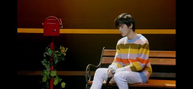 宋亚轩坐在长椅上面闭着眼睛聆听着前奏