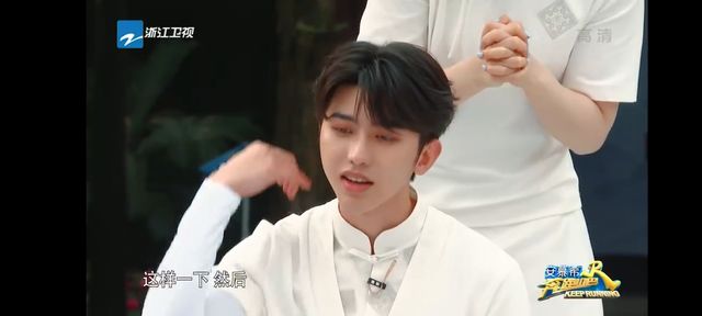 蔡徐坤听到瑶瑶的要求 乖巧的照做 往上假装的撩了撩头发