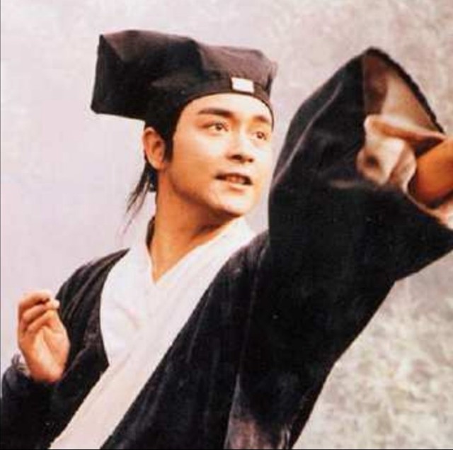 衣着也改成了“道袍”。交领右祍,以系带为扣,大袖收祛,左右开裾而有摆。看着衣袂翩翩,风流倜傥,活像个倩女幽魂中,那个秉性单纯、正直,勾得女鬼心魂俱乱的宁采臣。