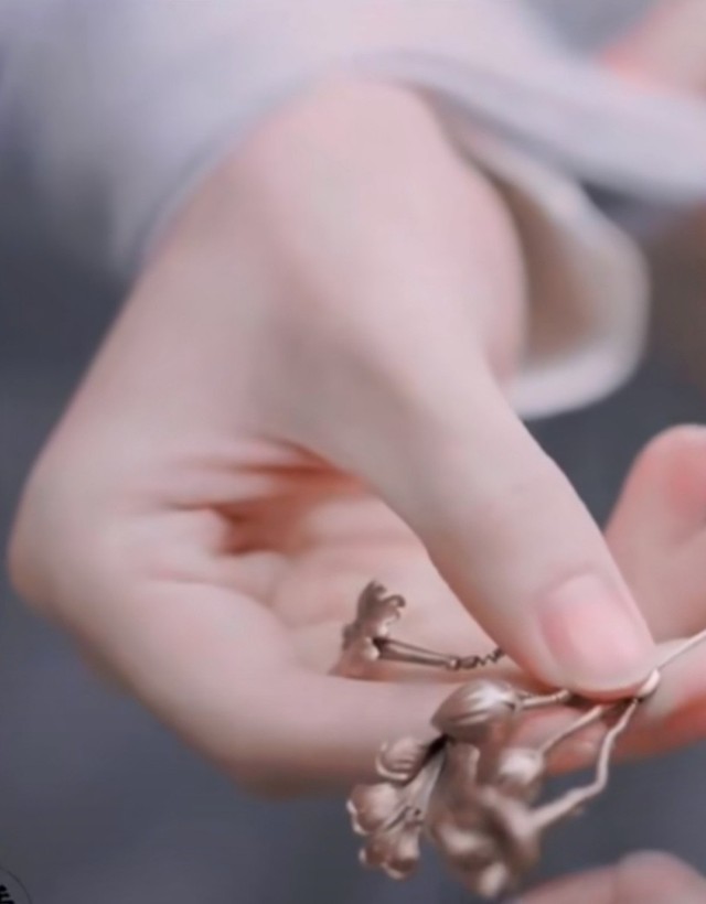 褚璇玑(静凤)微微低下头,略带羞涩的说:“你给我戴上,好不好。”