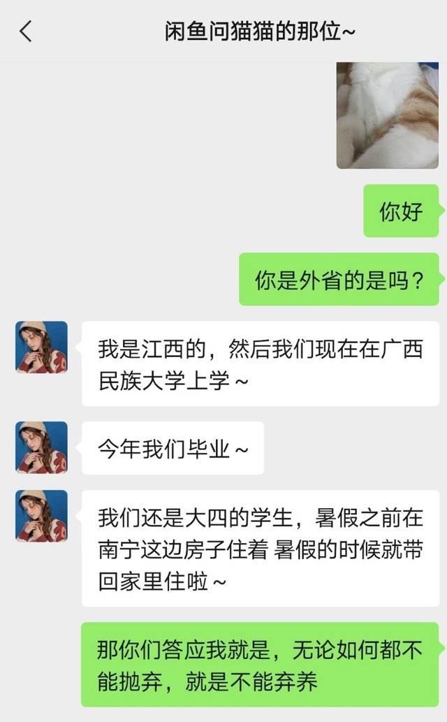 因为工作忙的原因,林初九没有办法再照顾猫咪十一了,就有段时间把他挂在闲鱼网上,希望遇到有爱心的人养,已经打了疫苗跟狂犬,有健康证,每一次打都是花了挺多钱包括洗澡啊,保养护理等,但是她都还是很舍得的,虽然她还是个赚钱能力不怎么行的小姑娘,虽然猫十一不是品种猫,在猫十一吃穿住林初九还是从来没有吝啬过,所以真的只是想找到有爱心的人,为了避免遇到猫贩子转卖的情况,才设定了几百块钱的费用。