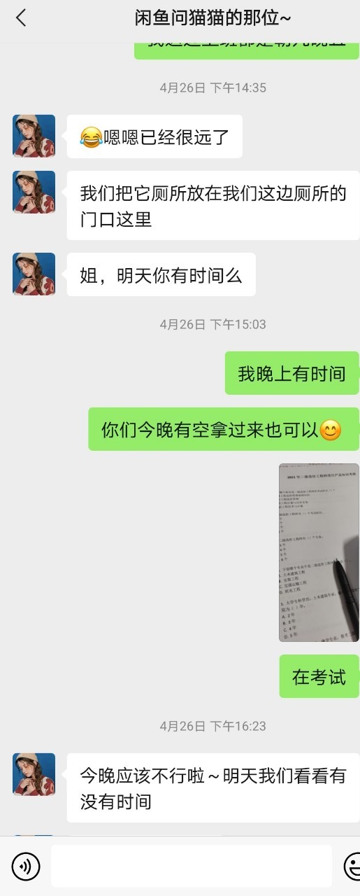 林初九在此之前已经提醒过大四情侣,要对猫咪要耐心,现在4月28号,他们为了蹭用十一的猫咪用品给另外一只用,还没有舍得送回来。