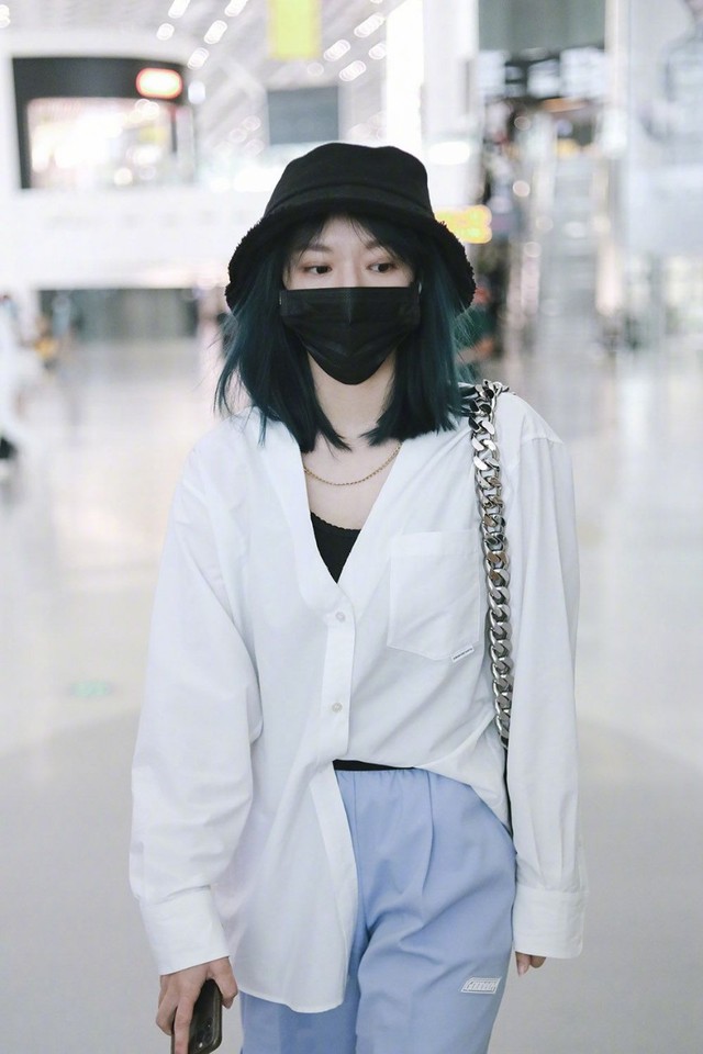 一个带着渔夫帽,穿着白色衣服,里面搭配着黑色背心,下面就是一条简单的蓝色裤子的女孩子出现在两人的面前。