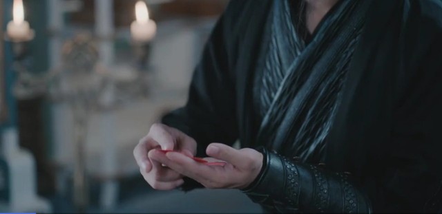 魏无羡唇角邪魅一笑,从衣服里拿出一张符纸,伸出食指在空中比划了几下,然后符纸倏地一下燃起来了。