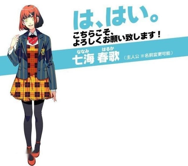 七海春歌(ななみはるか)※游戏中可改名cv:泽城美雪班级:作曲科年龄:15岁生日:4月1日星座:白羊座身高:157cm.体重:45kg血型:O型血擅长乐器:钢琴爱好:学习喜欢的食物:家常饭讨厌的食物:不太挑食出生地:某个乡村室友:涩谷友千香介绍:自小就体弱多病的她,在环境良好的乡下与喜欢音乐的祖母住在一起。与偶像HAYATO相遇后改变了自己的人生方向,喜欢HAYATO的歌。非常善良和温柔,是个努力认真的人,但是本人却没发觉。貌似也有偶像天赋。