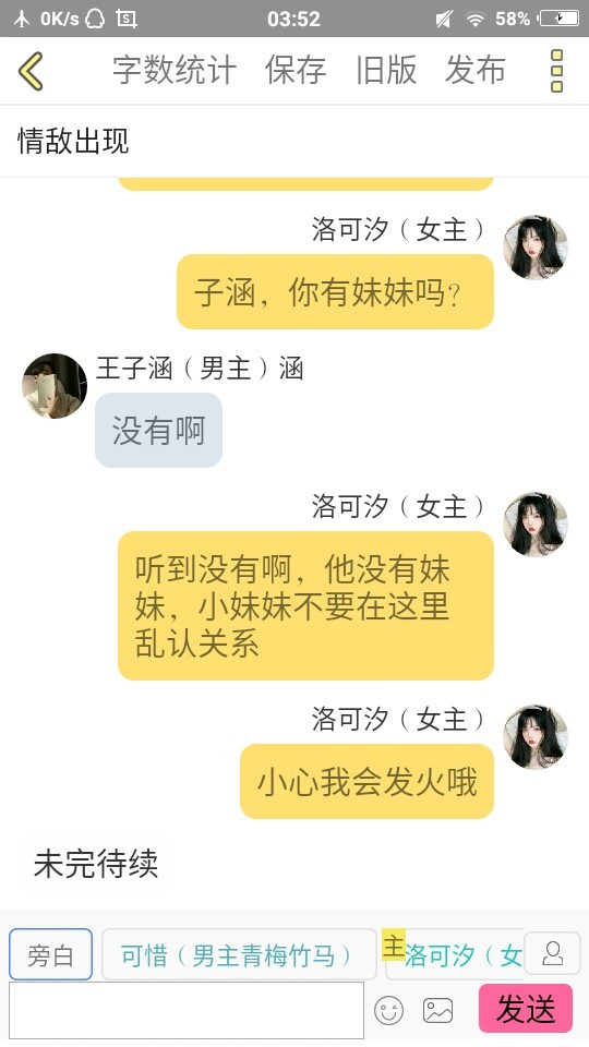 王子涵(男主)涵呃..我不想跟你说话
