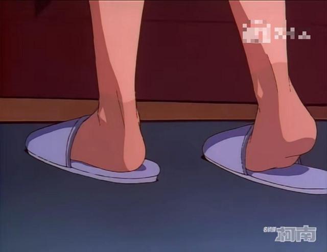 在花井开门走的时候,柯南发现花井小姐的脚明星和腿上的肤色完全是不同的