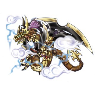 [王龙兽,所谓王龙兽,是由「数码核的空想」诞生的疫苗种究极体虚构数码兽。由于额头的接口(Interface)甚至数码核自身的创造力也奇迹般获得解放而进化的姿态。或许是因为原本在数码核内就拥有日本神话中「龙」与「武将」等勇猛的战斗数据,数码核创造出了身着威风凛凛的日式铠甲,双手持刀的「武士龙」的形象。左手之刀名为「铠龙左大刃」,右手之刀名为「铠龙右大刃」。背部的翼刃名为「铠马大名刃」。必杀技是由双手的刀放出的「永世龙王刃」,以及如同大河的沙土流一样狂暴,一边劈开一切一边突进的「黄铠」。也有种说法称此招来源于黄龙兽的必杀技「黄回」,但是并没有被证实。]