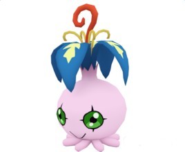 [花蕾兽,各种各样有毒植物的数据混合在一起,花骨朵模样的植物型幼年期数码兽。平素借助叶子在空中飘浮,什么都不做的话他是不会攻击的。必杀技是碰到就会刺痛的「毒刺刺」。发怒时也会自己放出刺。]
