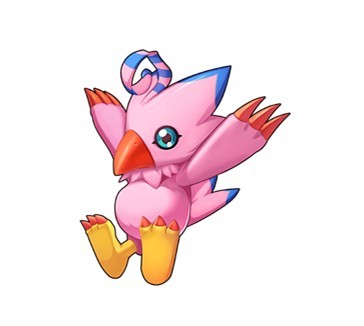 [比丘兽,翅膀部分像手臂一样发达的雏鸟型疫苗种成长期数码兽。翅膀可以灵巧地活动并抓住东西,不过因此飞上天空是件难办的事。平常在地面上生活着,当危险迫近时飞上天空逃跑。飞行能力与巴达兽旗鼓相当,将巴达兽视为竞争对手。似乎梦想是将来成为巴多拉兽随心所欲在天空翱翔,不想成为不能在空中飞的蛇鸡兽。好奇心旺盛的性格,喜欢啄种子兽的头部。必杀技是幻影之炎「魔法火焰」。]