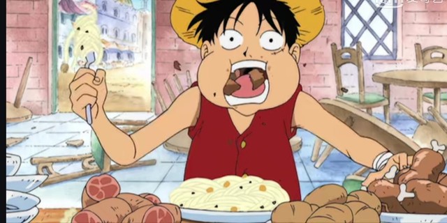 路飞刚刚在沙漠里走了好久 ,又饿又渴的他 眼神恍恍惚惚 都没有注意到刚才撞飞了人 ,像是饿死鬼一样 不停的吹着老板做饭