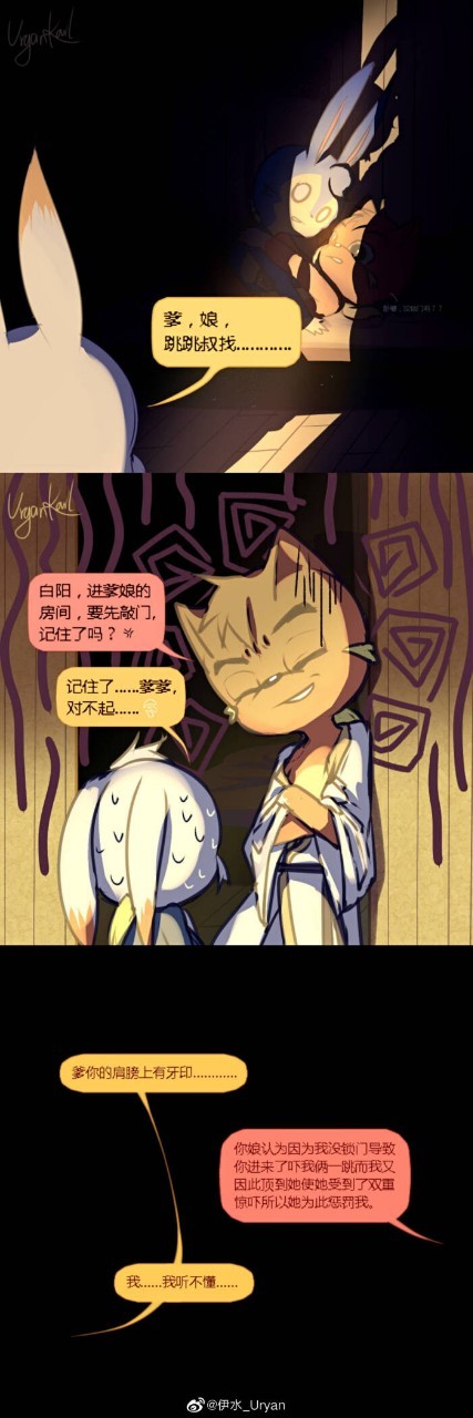 作者灵意:因为你娘以为是我门没关好你才进来的,导致他和我吓了一跳,还因我在他下面,所以顶了他一下,他又吓了一跳,所以她为此惩罚我。