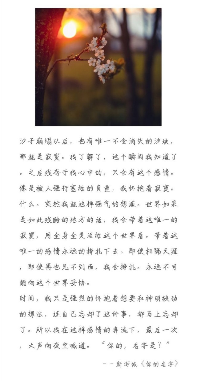什么。突然我就这样强气的想道。世界如果是如此残酷的地方的话,我会带着这唯一的寂寞,用全身全灵活给这个世界看。带着这唯一的感情永远的挣扎下去。即使相隔天涯,即使再也见不到面,我会挣扎。永远不可能向这个世界妥协。