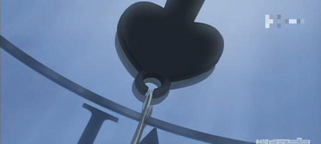 毛利小五郎手法是这样的,必须先准备一条长绳,然后在中间系上重火,再在绳子的另一端系上非常容易滑动的小环,把那个环套在大中的短针尖钻的装饰上面。