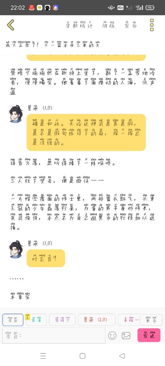 墨燃(1.0)哦?之前还没来得及问苏前辈,怎么怼叶公子那么熟悉?