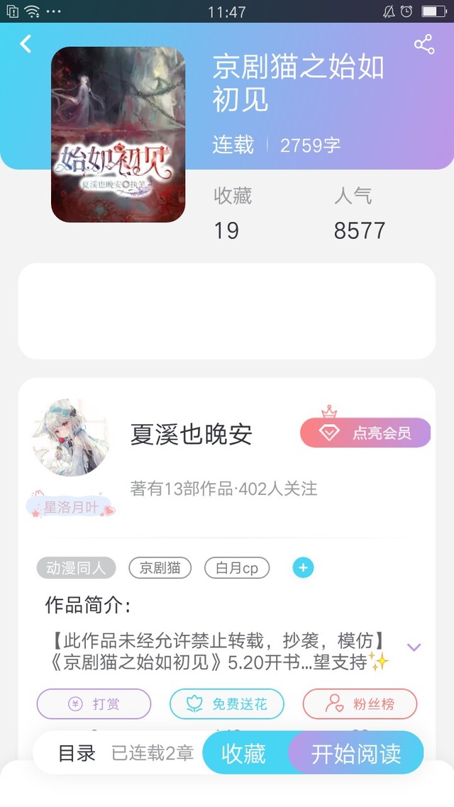 作者(夏溪)开了本古风白月CP武青CP的小说