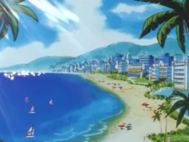 阳光,沙滩,晴空,海水,可以望见大量休闲度假的神奇宝贝训练家和宝可梦们。迎面吹来的风凉爽宜人,从周围的树林里传来了唧唧喳喳的鸟鸣。