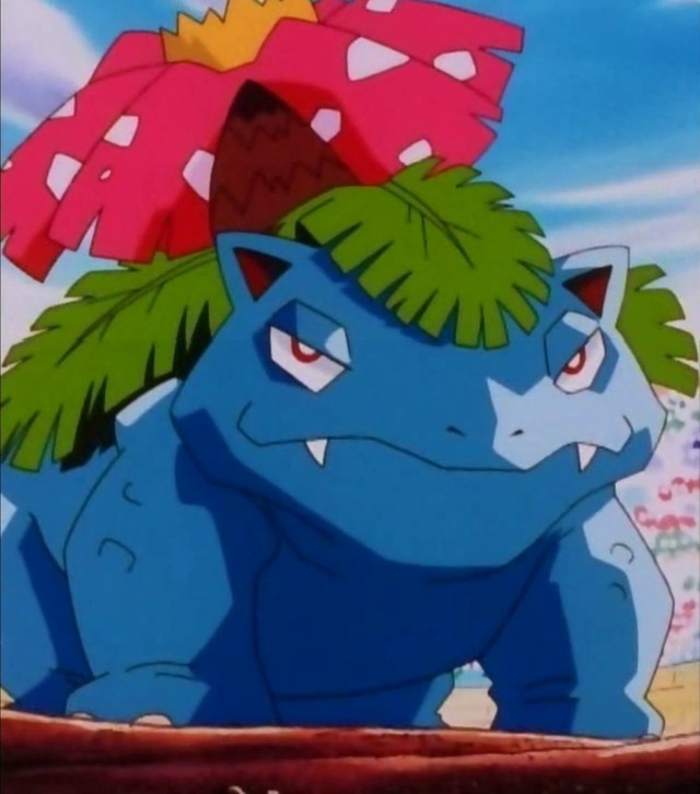 妙蛙花,体型庞大,看起来霸气侧漏;不过,尖牙陆鲨的等级不低,终究还是取得了胜利。