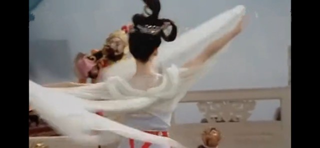 说罢,起身行至殿中,弯腰,舒展,轻薄的纱缓缓沿着手臂滑落。在琵琶的珠玉之声中翩翩起舞