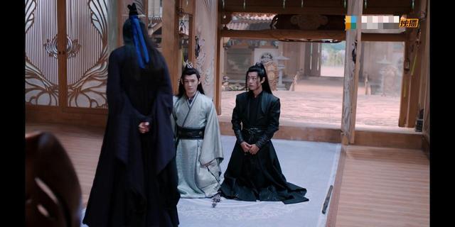 一玄衣少年与紫衣少年跪在大堂上。