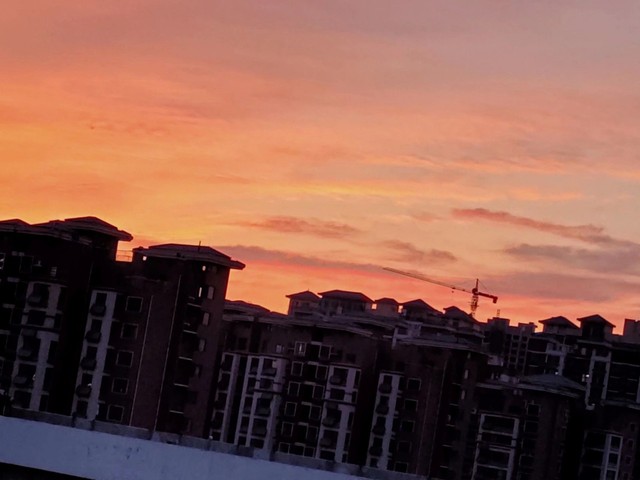 站在天台上,觉得天空离我们很近,一片金黄晃晃之中,又是这般柔意与恬静,没有泛起一丝涟漪,美得让人想象着坠入童话般那样迷幻。