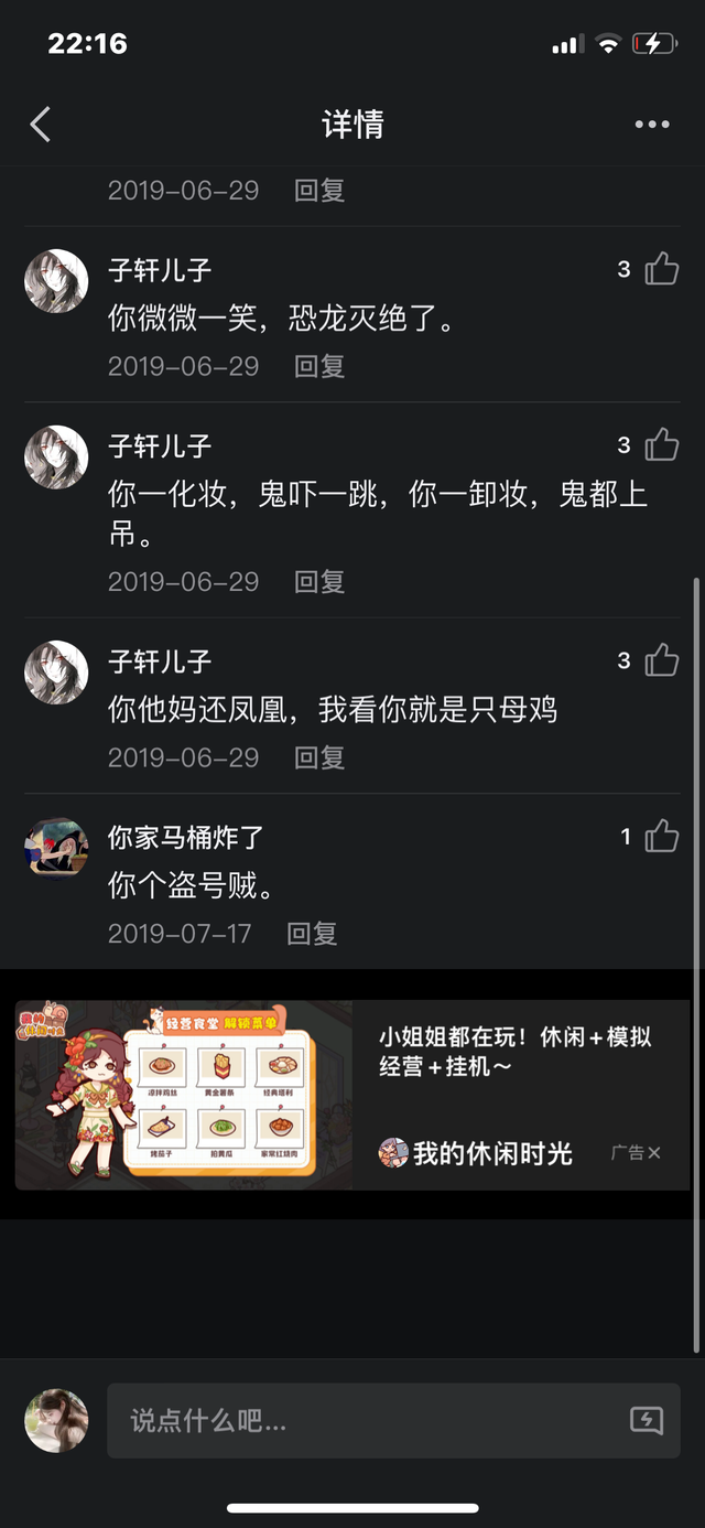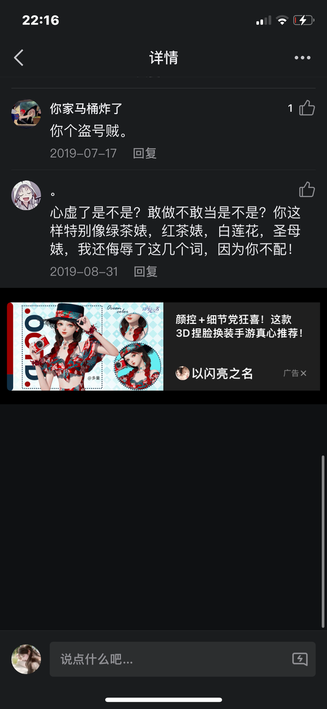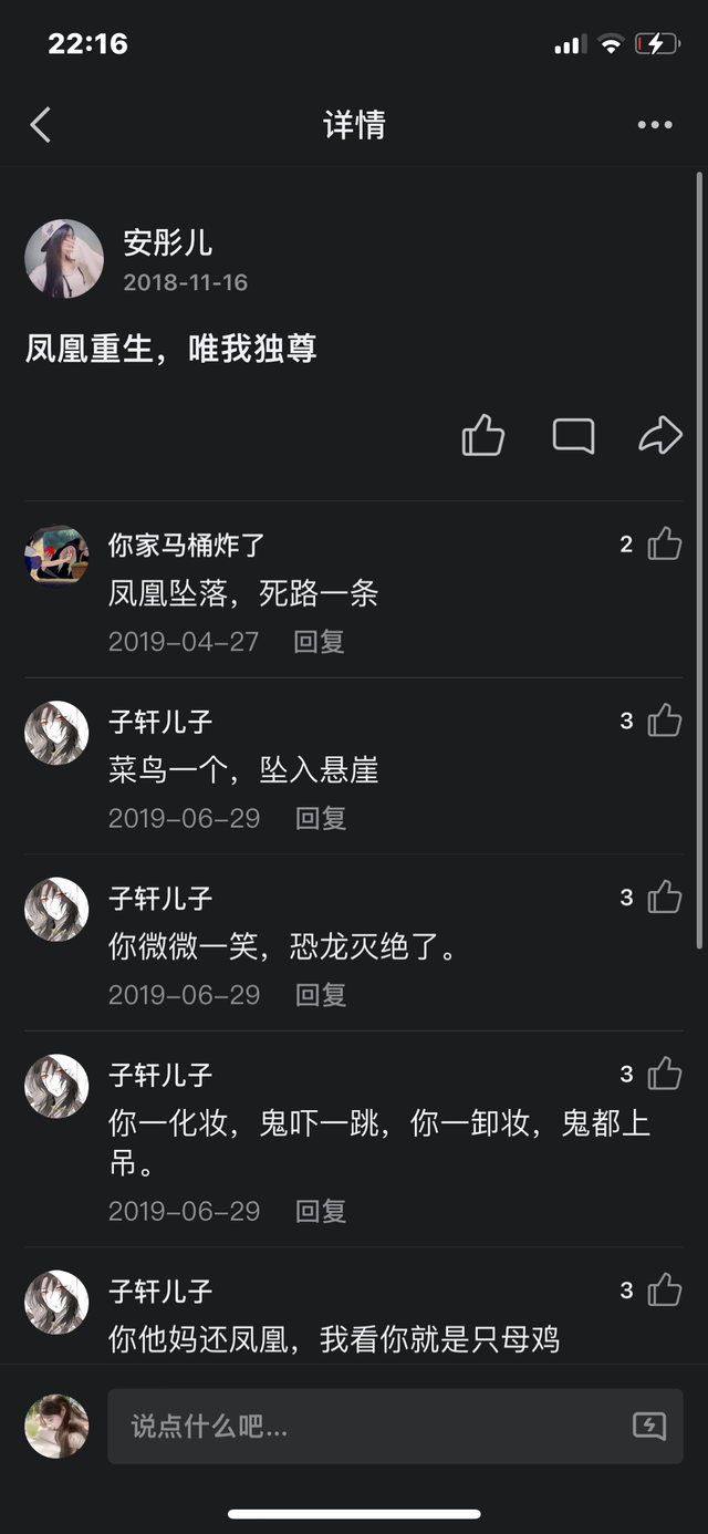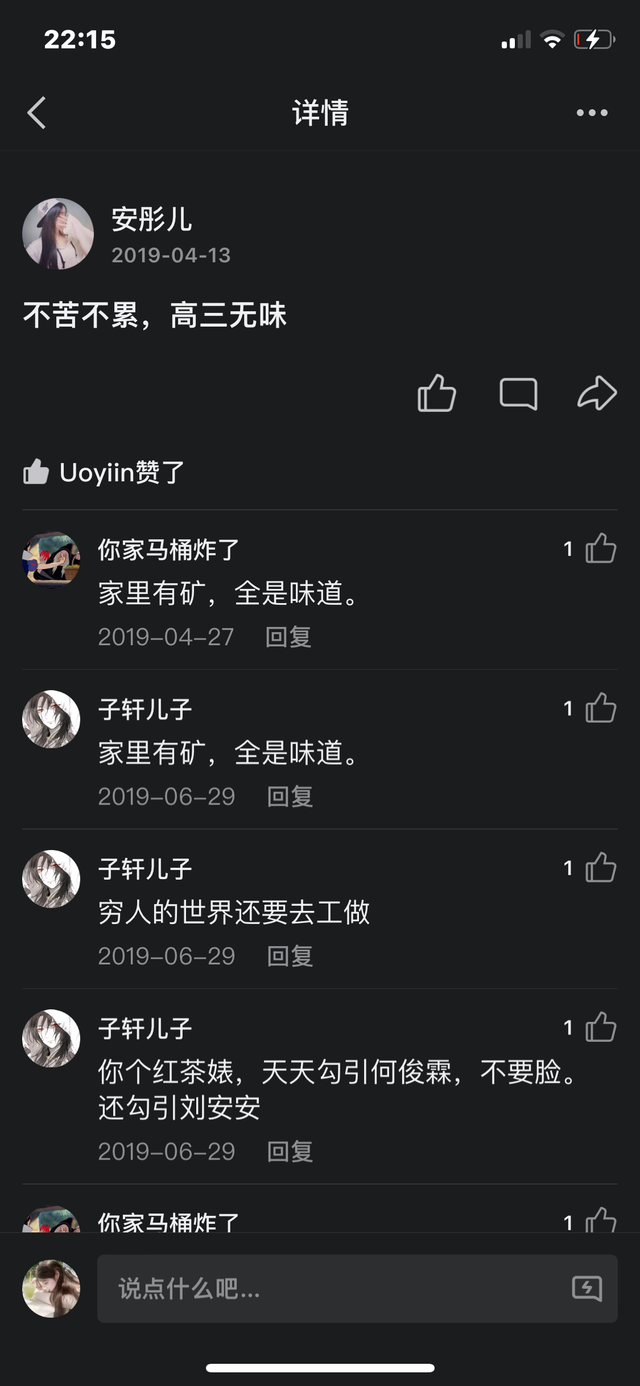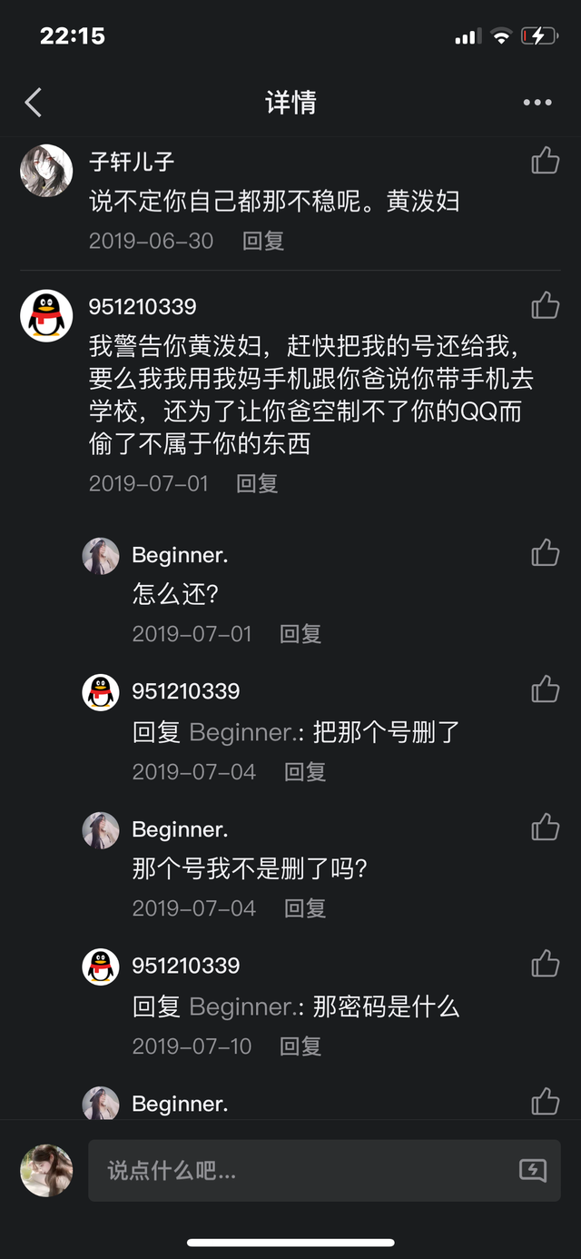 所以当时安彤儿和她爸共用的QQ动态底下就有了很多卢丽荧和何柳菲以及刘静娴辱骂她的言论,很脏也很难听。