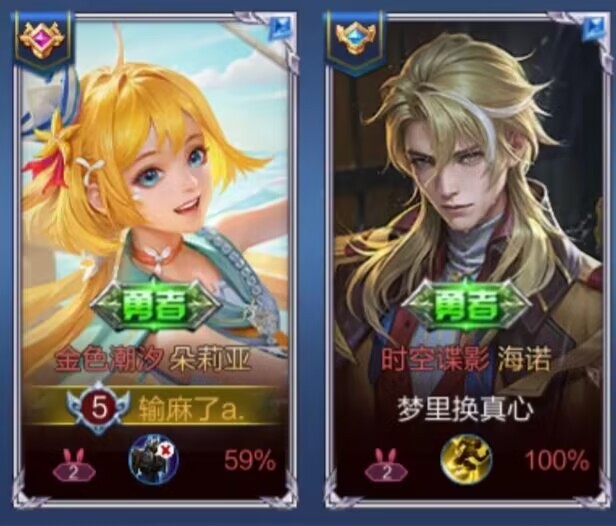 两个人的截图其实挺多的,比如发育路和马瑶组合一样出名的乔离组合,超标cp海诺朵莉亚,以及露娜孙悟空的情限。