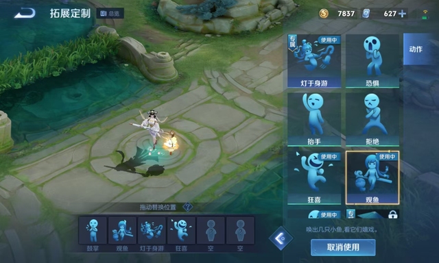她觉得那个观鱼的动作也很适合。