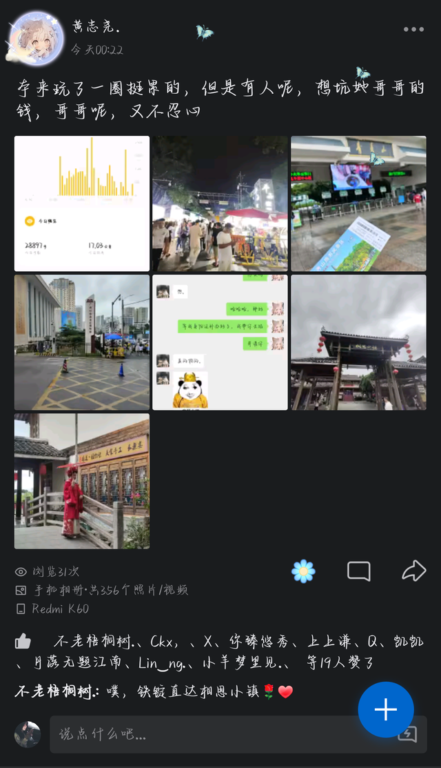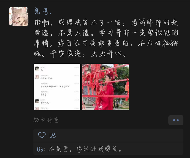安顺尧前几天不是带安彤儿去拍簪花嘛,回来之后的凌晨安彤儿在翻朋友圈,结果看到了安顺尧发的朋友圈,直接给她整哭了。