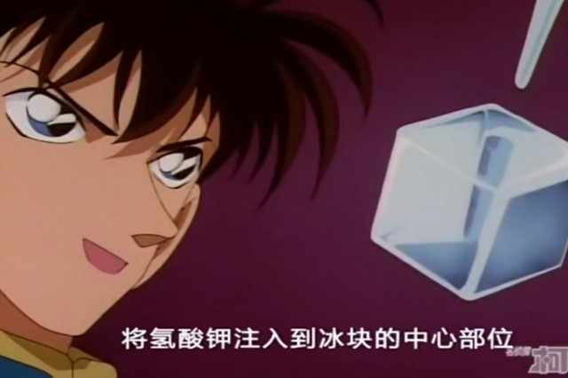 工藤新一利用被害人喜欢咬冰吃的习惯,在冰中注入不溶于水的氯化氢。