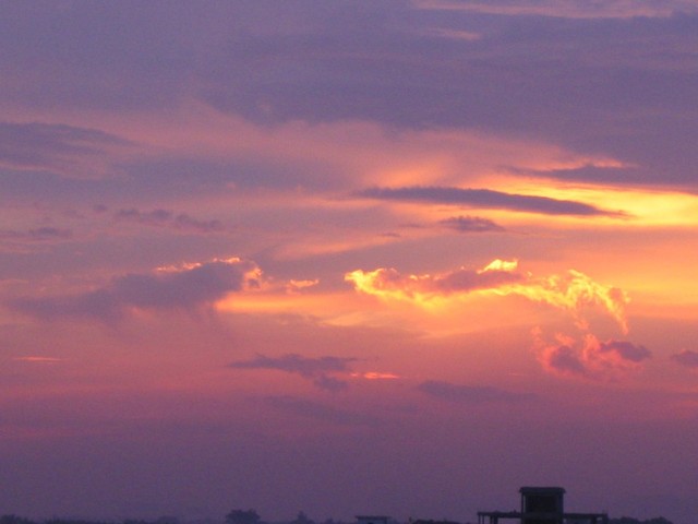 天放晴了,从窗口望出去,一块透明蓝天,像一张丝手帕,蓝天上停留着一些细碎而洁白云块,像是纱巾上花朵。