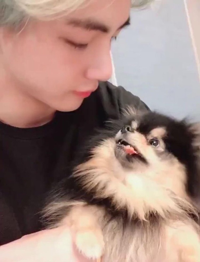 此时金泰亨的宝贝碳出来了,叼着玫瑰花一朵,冲着朴智旻叫唤……