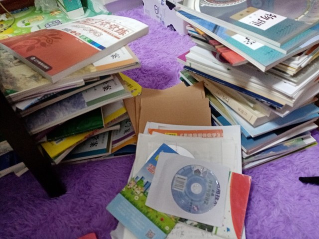 这还就只是整个高一的书,我到高二分班之后又有发一大堆书,我这些书里边包括练习册呀,书本啊,还有一些笔记和一些全解,还有自己买的练习册,真的太累了。