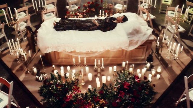 可那不是棺材,而是一张不断冒着寒气,周围摆放着白色的蜡烛🕯。