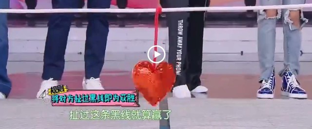 黄明昊竭力保持平衡,却还是来了个踉跄,蔡徐坤是真的很厉害。(我也不知道现实中谁更厉害)最后黄明昊摔过了黑线,蔡徐坤获胜。