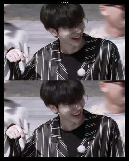 他好好看,挂在鼻梁上的眼镜是个利器,使他像个高中生一样,黑色条纹真的很配他