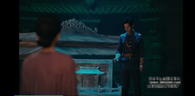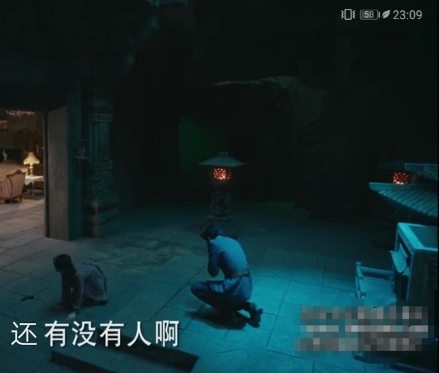 张高原和窦诚推扯,窦诚最后按了机关,石壁缓缓下降