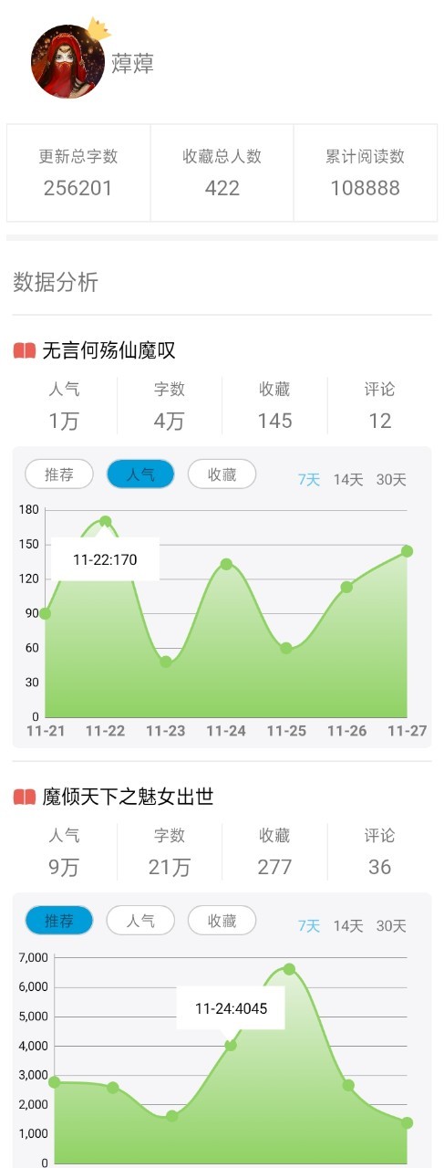 阿季(作者)还有一件事,大家看看,这两本书都是我的作品,但是差别太大了吧,这个数据差的太多了吧。不知道是不是因为更新的原因,可是如果大家喜欢的话还请多多支持。