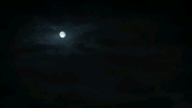 月亮隐在残黄的寥寥瑟叶之后,却是静悄悄地挂在枝桠上。