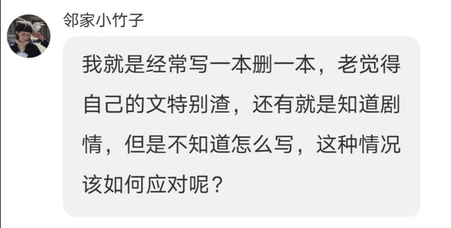 弃文或者总写一个开头的话,你是不会知道自己的问题是在剧情还是人设,而是觉得自己哪里都是问题。
