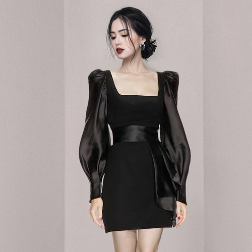 第二天一早.羽晗起床赶紧着去洗漱.都弄好了后.直接去衣帽间去换衣服啦.羽晗换了一身黑色的裙子.配了一双银色蕾丝高跟鞋