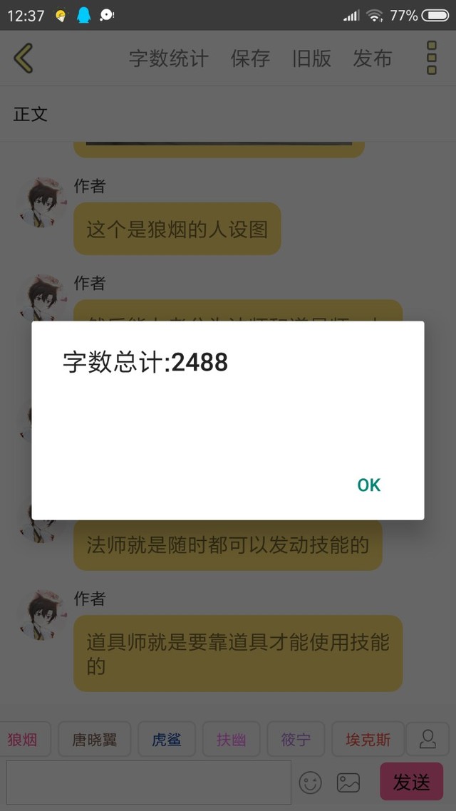 作者唐晓翼,狼烟,埃克斯,筱宁等为法师,亚瑟,西奥等为魔法道具师,之后还会有更多角色