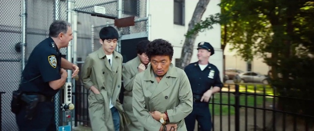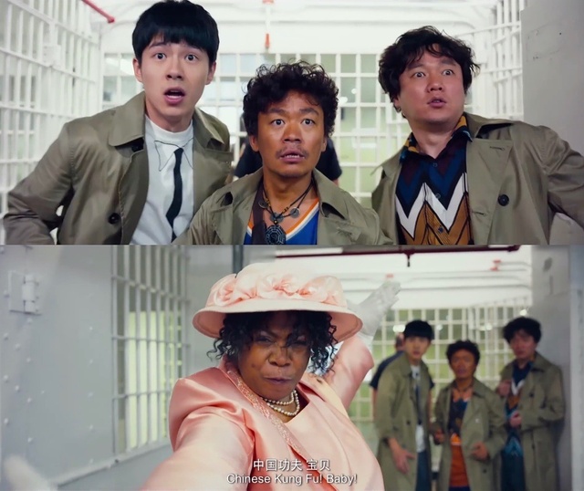 四人刚跑出门,就迎面遇上了警察。被苦练“中国功夫”的侦探大妈成功击倒。