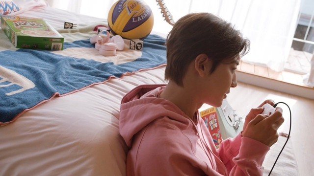 二十分钟后朴灿烈才走出浴室,他一走出浴室看见的便是尹软软正趴在地板上玩着手机,他无奈的笑了下随即拦腰将她抱起往床上放。