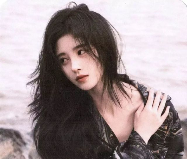 岩石上的少女转过头,青丝在海风中凌乱。