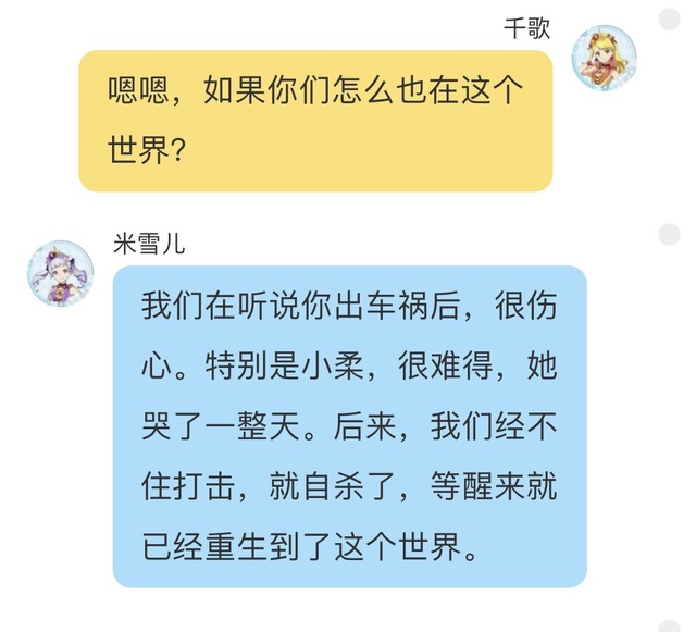 蓝樱雪额……自杀?不至于吧,可以说因为太过想念千歌就穿越了,自杀有点那个…恐怖……
