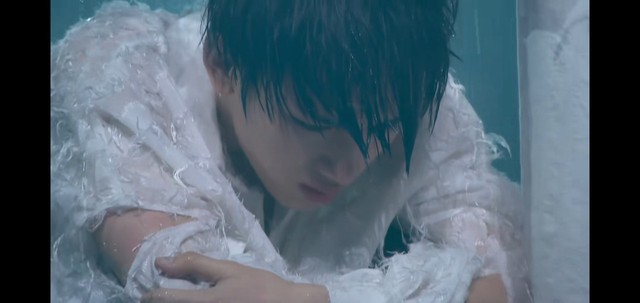 大雨中,少年蹲下身来紧紧地抱住自己,无助又孤独。